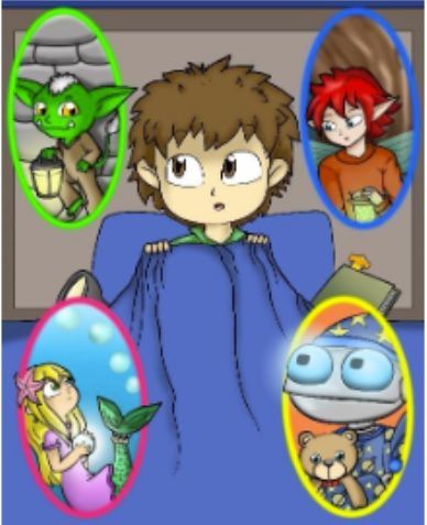 published books, one of bedtime stories, and one with colouring pages.